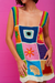 Discover our Crochet Patchwork Mini Dress, adorned with square patchwork and vibrant thick rainbow straps. This dress is designed to make you stand out in the crowd with its unique style and bold details.