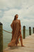 Our iconic thobe silhouette in chocolate brown! The Cleo Sequin Thobe features a V-cut neckline, dainty sequin details down the center, wide angled sleeves and soft texture throughout the flowing handloom fabric and bodice.