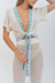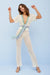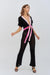 The Crochet Front-Tie Crop Top offers a deep V-neckline and short dropped sleeves. The center and bottom hem of the top feature contrasting colored crochet and ties in the center to create a wrapped effect. Wear this as a set with the Crochet High Rise Pants.