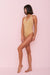 Este body presenta un escote halter con cintura ceñida, espalda escotada y una silueta favorecedora para el cuerpo para un uso versátil, ya sea debajo de tu vestido pītusa transparente favorito o solo como top.